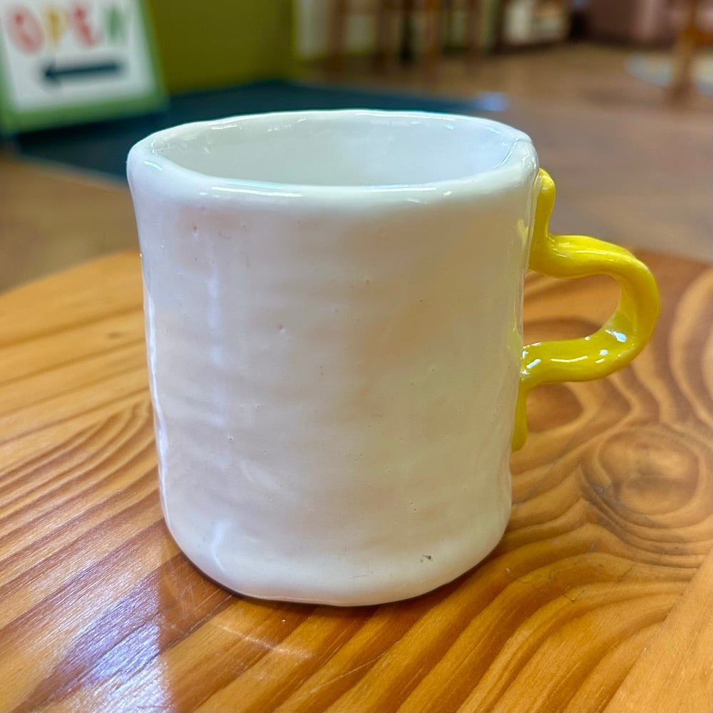 This is a small mug to drink from or to put things in or to have and to hold.