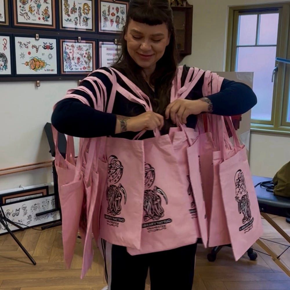 The tote bags are medium sized (not too big, not too small) and have really nice long straps; there’s nothing more annoying than your T-shirt bunching up when carrying a tote bag, right!?